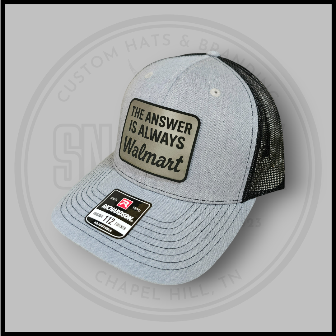 Built on a Richardson 112 in Heather Grey/Black, this one’s for the chaotic shoppers who know the truth - the answer is always Walmart. Clean contrast, subtle sarcasm, and straight Snapbexx humor. You don’t even need a cart for this one.