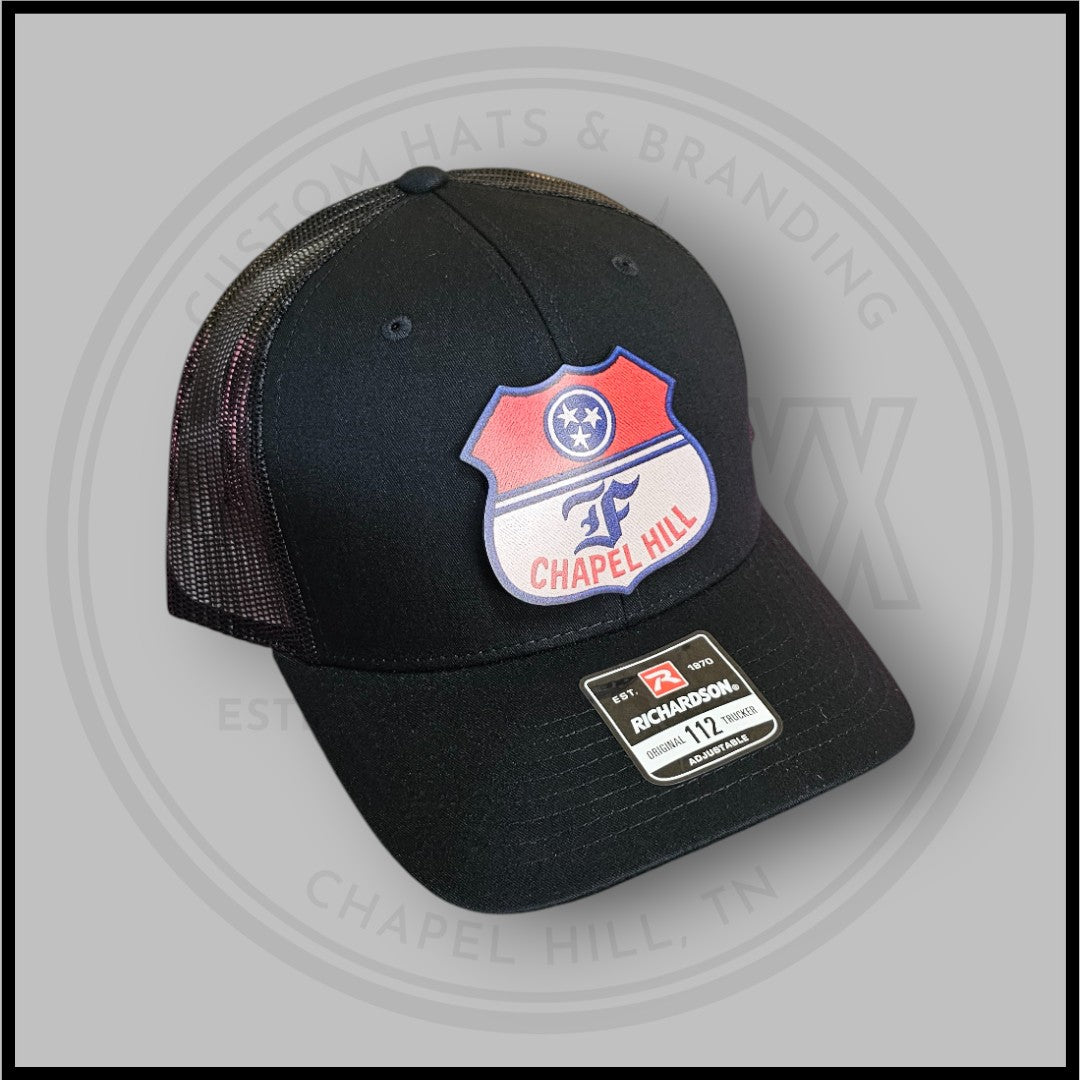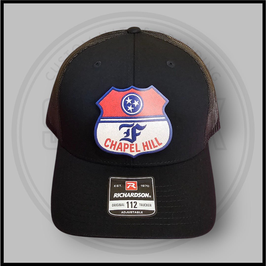 Built on a Richardson 112 in Black, this hat features our exclusive Chapel Hill Shield patch - a bold, embroidered-inspired design that reworks hometown pride into a statement piece. With the Tennessee tri-star, vintage font, and clean red-white-blue layout, it’s giving small-town roots with big-time energy.