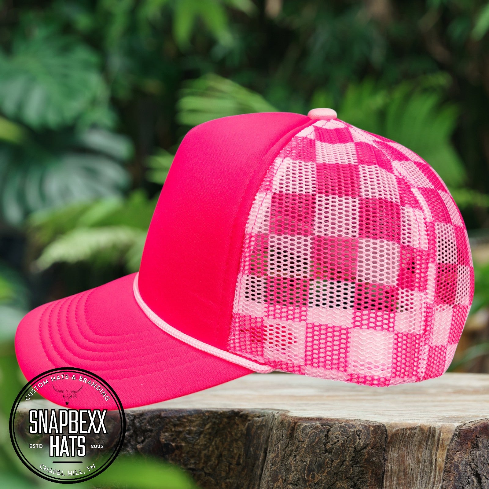 Rev up your style with our Foam Trucker Hats featuring checkered mesh backing—designed to bring that moto edge to your everyday look. Lightweight, breathable, and built for speed (or at least the vibe), these hats are perfect for track days, trail rides, or just repping your love for two wheels. With a snapback closure for a custom fit and bold checkered flair, this hat keeps your cool factor in overdrive.