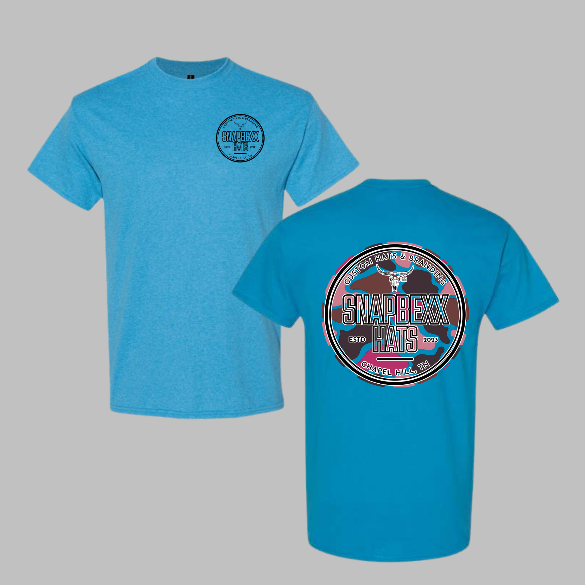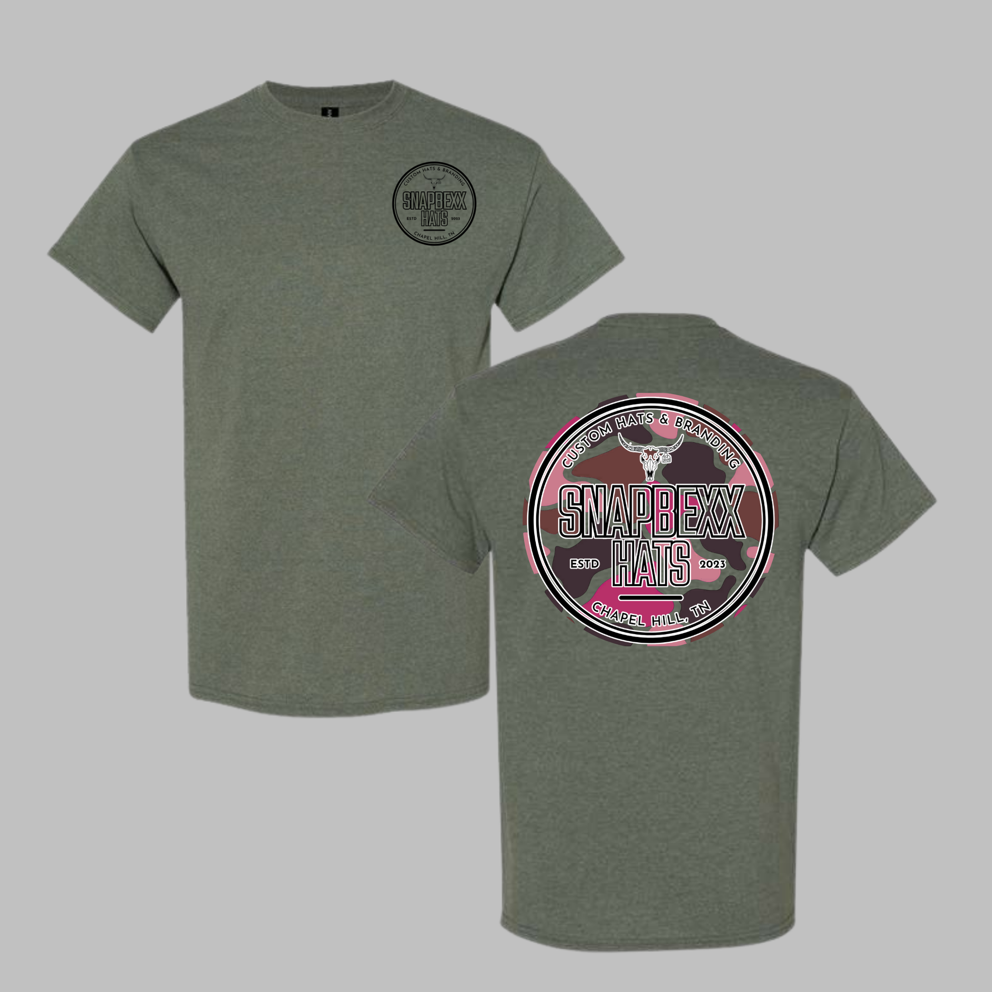 Snapbexx logo stamped loud on the back in pink camo—because blending in was never the plan. Printed on a solid Gildan 500 tee, built for comfort but made to stand out. Rock it your way—5 color options and sizes small to 3XL because no one’s left out. If you're about that real energy, throw this on and let the back do the talking.